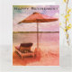 Photographic card of a beach umbrella and lounge seat - perfect for holidays, farewells & retirements - customize front & inside message. Large size perfect for departing co-workers.