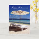 Photographic card of a beach umbrella and lounge seats - perfect for holidays, farewells & retirements - customize front & inside message.