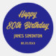 Retro fonts create a bold envelope gold and navy blue envelope seal. 4 lines of text let you customize your message. The first two lines here say Happy 80th Birthday in a bold retro script. The last two lines are in a simpler san serif. They provide the birthday celebrant's name and birthday. I designed this for maximum flexibility. You can change the background colour and add your own graphics if you want.