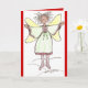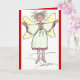 carte de voeux, couverture a un dessin d'ange lunatique, et à l'intérieur : ATTENDEZ MIRACLES! ... arrière - plan rouge foncé / poste correspondant disponible