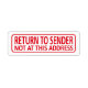 Retourner à Expéditeur non présent à ce Étiquette de adresse. caractéristiques de conception de "" retour à l'expéditeur, et non pas à cette adresse" en caractères de majuscules rouges sur arrière - plan blanc.