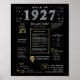 Cette affiche numérique de 1927 est remplie de faits amusants, d'informations et de faits saillants de ce qui s'est passé il y a des années. Avec ses accents faux or et argent sur un arrière - plan noir, ses icônes distinctives et sa typographie audacieuse, l'affiche numérique dégage un look intemporel et élégant. Il sert de pièce de conversation mémorable lors de fêtes d'anniversaire et d'anniversaires, et lorsqu'il est encadré, il devient un cadeau de conservation réfléchi, ajoutant une touche de nostalgie à tout espace. Dégustez votre bien-aimé avec notre affiche imprimable Back en 1927, un cadeau mémorable qui déborde de nostalgie et d'individualité. Plein de détails captivants, il offre un voyage personnalisé à travers l'histoire, ce qui en fait une sélection idéale pour marquer une occasion d'anniversaire chère. La photo est une affiche imprimable pour l'année 1927 qui comprend des informations telles que le revenu moyen par an, les noms de bébés populaires, des événements historiques comme le 18ème Amendement et le krach du marché Stock, les inventions de l'époque, les tendances de la mode comme les robes de Flapper et les Casquettes de Cloche, les termes d'argot, et le coût moyen d'articles comme une livre de pain et un gallon de gaz.