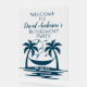 Bienvenue à vos invités dans une fête spéciale avec cette table en acrylique élégante. Design composé d'un hamac et d'oiseaux de palmiers bleu foncé. Le signe idéal pour célébrer votre retraite en famille et entre amis. Tout le texte peut être customisé puis personnaliser avec le nom et la date du parti.