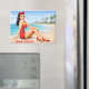 Perfect as a Miami Beach souvenir, fridge magnet, locker decor, or gift for lovers of vintage travel art, pin-up illustrations, and mid-century coastal aesthetics. The bold coral lettering and timeless postcard style make this magnet a standout piece for any retro collection.
