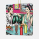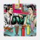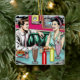 Personalized Christmas ornament. Retro pop art comic book style ornament. Cute 1950's era couple sitting in a diner with milkshakes, fries and cheeseburgers on a date. Colours used are teal, pink, red, black and yellow. Old-fashioned nostalgia. This picture is hand drawn by myself.