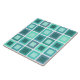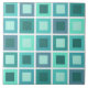 A simple mid century modern inspired abstract simple pattern with tiled squares in rows and columns. A great gift idea for anyone who loves minimalist 20th century art. This one has shades of blue green, such as turquoise, aquamarine, teal, and ocean green.