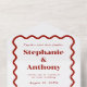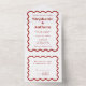 Retro 1950s Wavy Edge Dark Red Wedding All In One Invitation