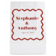 Give your wedding gifts a vintage touch with this Retro 1950s Wavy Edge Dark Red gift bag. The crisp white background is framed by a bold dark red wavy border, capturing the timeless elegance of the 1950s. The bride and groom’s names and wedding date are beautifully displayed in a coordinating dark red font, adding a personal and sophisticated detail. Perfect for bridesmaids, wedding favours, or gift presentations, this retro-inspired gift bag combines both style and function, making your special day even more memorable.