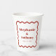 Serve your wedding drinks in vintage style with this Retro 1950s Wavy Edge Dark Red wedding paper cup. Featuring a crisp white background framed by a bold dark red wavy border, this design brings timeless mid-century elegance to your celebration. The bride and groom’s names and wedding date are beautifully displayed in a coordinating dark red font, adding a personal and sophisticated touch. Perfect for wedding receptions, cocktail hours, bridal showers, or engagement parties, these retro-inspired paper cups offer both convenience and a stylish accent to your special day.