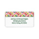 These return address labels have a vintage look with a retro style geometric pattern in red, lime green, orange, pink and green. Your name and address appear in matching green lettering below.