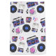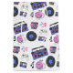 Retro blue and pink Vinyl Records, boomboxes, video gaming and cassette tapes birthday gift bag.
