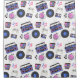 Retro blue and pink Vinyl Records, boomboxes, video gaming and cassette tapes nostalgic shower curtain.