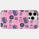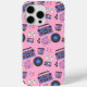 Retro blue and pink Vinyl Records, boomboxes, video gaming and cassette tapes nostalgic phone case.