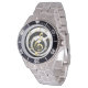 Has heft and feel of expensive stainless steel quartz watches. Good band with safety catch.  I removed links, which is easy because engraved arrows show direction to push the linking pins. As always by this seller, the image (a railroad logo) is a perfect reproduction of my emailed image, and is precisely spaced and aligned.