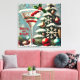 Retro 50s Cranberry Snowflake Christmas Martini Canvas Print
