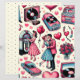 Double-sided scrapbook paper featuring retro motifs of Valentine’s Day with a 50s diner theme and coordinating patterns to help you with your paper crafting projects. Perfect for all types of papercraft from scrapbooking to junk journalling.