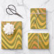 Retro 60s 70s Abstract Lines Pattern Green Yellow Wrapping Paper Sheets