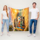 This 1960s inspired sunset scene features a colorful glowing sky with waves gently rolling onto the beach as the sun dips below the horizon. Complete with a painted hippie travel van, surfboards and guitar. The only thing missing is you! Made for beach bums, surfers, travelers, dreamers, and anyone who feels most alive chasing the next horizon. Show off your love for coastal life and vintage vibes with this groovy fleece throw blanket. Perfect for beach house decor, surf shacks and any space that needs a touch of the coast. | The matching throw pillow is available in my store.