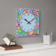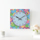 Retro 60s Purple Blue & Yellow Flowers Square Wall Clock