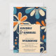 Retro 70ies teal daisy flowers wedding all in one invitation