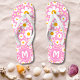Retro 70s floral pink custom flip flops with simple daisy pattern and groovy typography monogram initial. Cool 1960s 1970s vintage boho floral daisy design yellow and white on a vibrant pink background. Simple hippie style daisy flower pattern. Original artwork by artist Catherine Sweetman