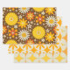 Bring bold retro vibes to your gifts with this set of wrapping paper sheets featuring three vintage-inspired patterns: groovy 70s orange and mustard yellow flowers with atomic starbursts on a rich brown background, retro orange flowers with starbursts on beige, and atomic starbursts in orange and mustard yellow. Perfect for retro lovers, vintage-inspired holiday wrapping, birthdays, parties, or anyone who loves funky mid-century and 70s-style design