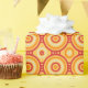 Wrap your gifts in retro vibes with this bright 70s pattern of linked circles in warm red, orange and yellow.