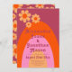 Bring some simple stylish groovy floral 70s vintage fun with a modern twist to your wedding with this 1970s minimalist floral wedding invitation. Cool retro vintage daisy rainbow arch design in apricot orange tangerine, pink, mustard yellow and burgundy with groovy typography script which is easy to personalize using the simple templates. Ideal for setting the tone for a summer spring or autumn wedding. Original artwork by artist Catherine Sweetman