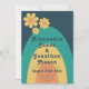 Bring some stylish groovy floral 70s fun with a modern twist to your wedding with this 1970s minimalist floral wedding invitation. Cool retro vintage daisy rainbow arch design in apricot mustard navy blue and teal with groovy typography script which is easy to personalize using the simple templates. Ideal for setting the tone for a summer spring or autumn wedding. Original artwork by artist Catherine Sweetman