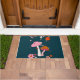 Retro 70s Mushrooms And Flowers Navy Blue Doormat
