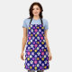 Retro 70s Style Flower Rpt Pattern on Dark Blue Apron