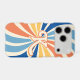 Bursting with multiple colors, the sunburst pattern phone case features a 70s, retro inspired design. The cellphone cover is ideal for accessorizing spring and summer outfits or everyday use for those who love color. Personalize it by adding a letter.
