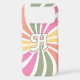 Bursting with multiple colors, the sunburst pattern phone case features a 70s, retro inspired design. The cellphone cover is ideal for accessorizing spring and summer outfits or everyday use for those who love color. Personalize it by adding a letter.