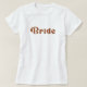 This bride bachelorette t shirt features a retro 70's themed font in rust terracotta colouring. Order the white bride option for the bride-to-be and the coordinating orange 'babe' shirts for your bachelorette group. Colours are fully editable! Click 'edit design' to create your own colours.