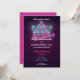 80's Dance Party Wedding Invitation featuring a retro style typography of 'Dance Party Wedding''. Designs include elements of dark purple, blues, and pinks, sci-fi futuristic elements from the 80s, triangle and grid.