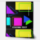 A fun 80's style retro pattern of geometric shapes in bright fluoro colours and custom text in a retro trendy font.