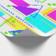 Eighties fluorescent neon colour print of a geometric shape pattern. This trendy 1980s fashion design has colourful fluoro squares, lines, triangles, frames and rectangles of green, blue, pink, purple, blue and orange hot colours with a black background. This retro pattern would appeal to anyone who loves the 80s or loves bright bold colour and shapes. This design also has an added line on it with custom text which you can amend to put in a personalized seasonal or occasional greeting.