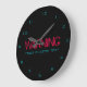 A clear Warning, personizable with your custom message, and a neon lights 80s inspired design.