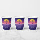 Retro 80s Neon Purple Synthwave Sunset Wedding Paper Cups