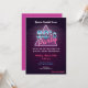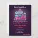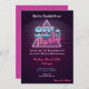80's Party Invitation featuring a retro style typography of '80's Party''. Designs include elements of dark purple, blues, and pinks, sci-fi futuristic elements from the 80s, triangle and grid.