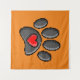 Retro 80s video game 8 bit pixel art dog paw print. Custom tapestry. Orange background.