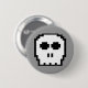 Simple and clean black and white design of a human skull created to mimic the classic, 8-bit style of early video game art.