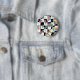 A bold retro-inspired button featuring a lively pattern of roller skates, cassette players, and vintage tech icons.