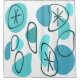 A mid century modern art design with geometric rocks or pebbles in various shapes and sizes, along with outlines and vintage atomic style stars.