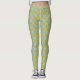 Retro Abstract Blue and Yellow Flowers on Green Leggings