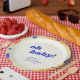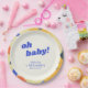 This personalized baby shower paper plate features a playful “oh baby!” message framed by a painterly, abstract border with soft, textured color. The cheerful typography and clean center layout make it easy to customize with names while keeping the design bold and fun.