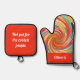 Add a touch of funky retro flair to your kitchen with this vibrant pot holder and oven mitt set! Featuring a groovy design that takes you back in time, these kitchen accessories will bring a pop of colour and nostalgia to your cooking adventures. Get ready to cook with style and a dash of retro charm!