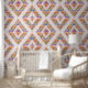 Retro abstract pattern in Ikat geometric style. Vintage colourful ethnic wallpaper.