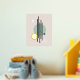 Poster featuring abstract, geometric shapes in retro colours with gold foil accent.