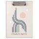 Clipboard featuring geometric shapes and lines in retro colors and your custom name or text.